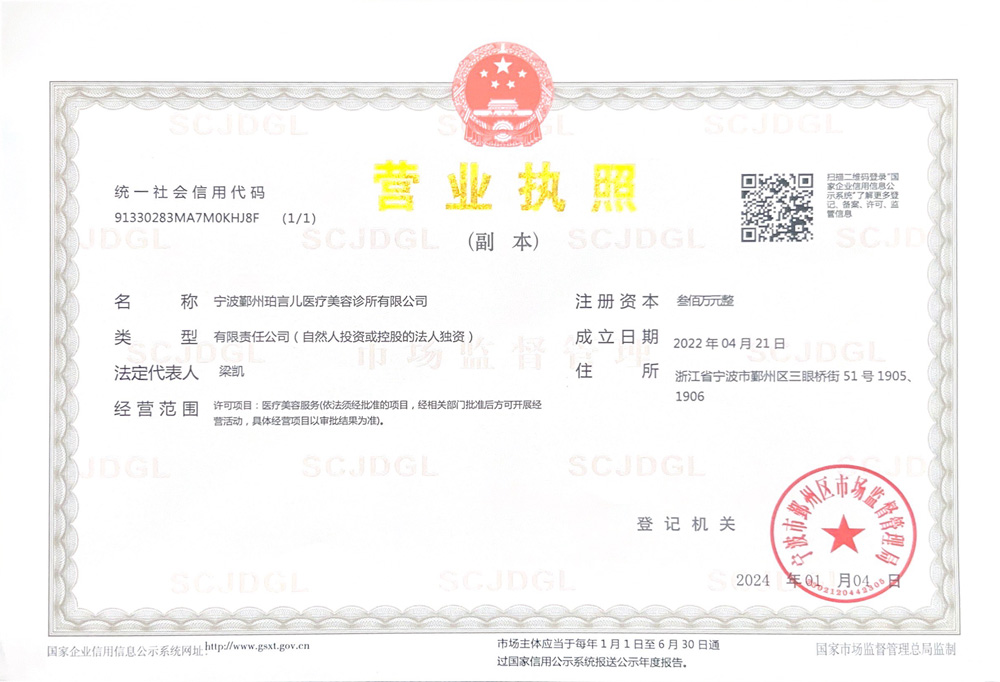 宁波勤州珀言儿医疗美容诊所有限公司