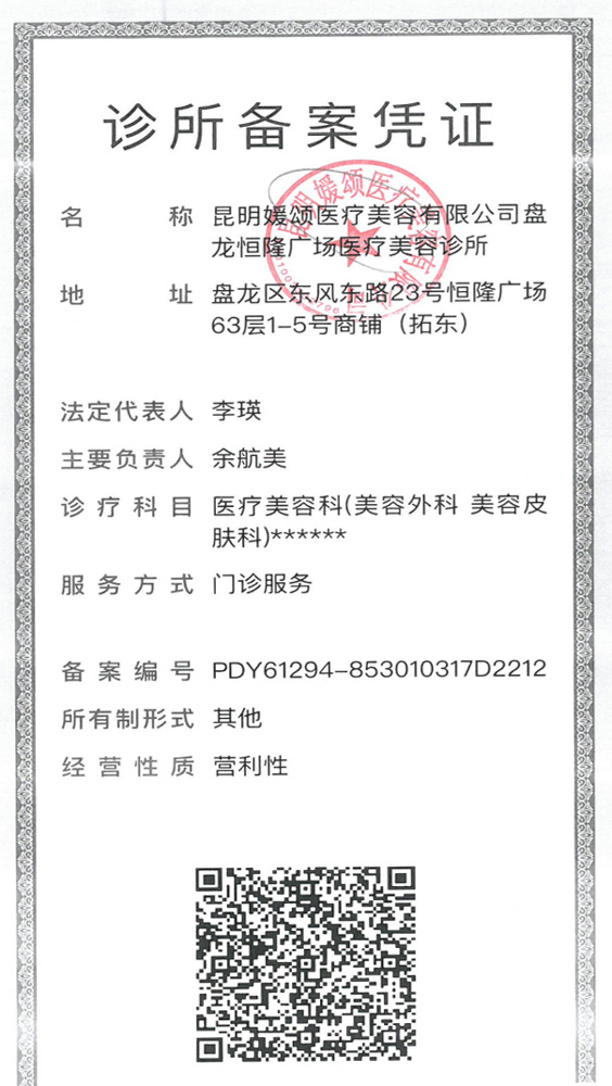 昆明媛颂医疗美容有限公司盘龙恒隆广场医疗美容诊所