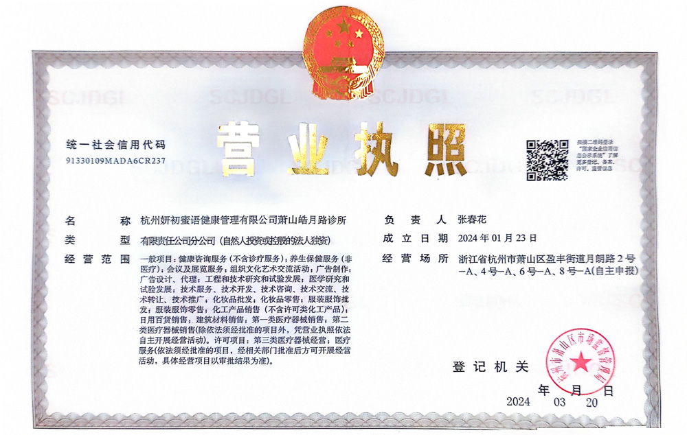 杭州妍初蜜语健康管理有限公司萧山皓月路诊所