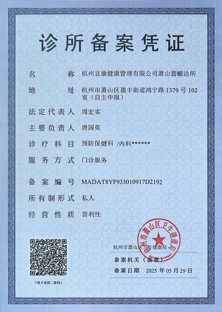 杭州言康健康管理有限公司萧山翡郦诊所