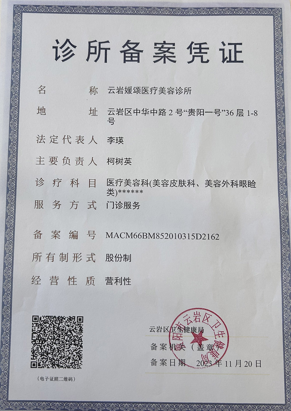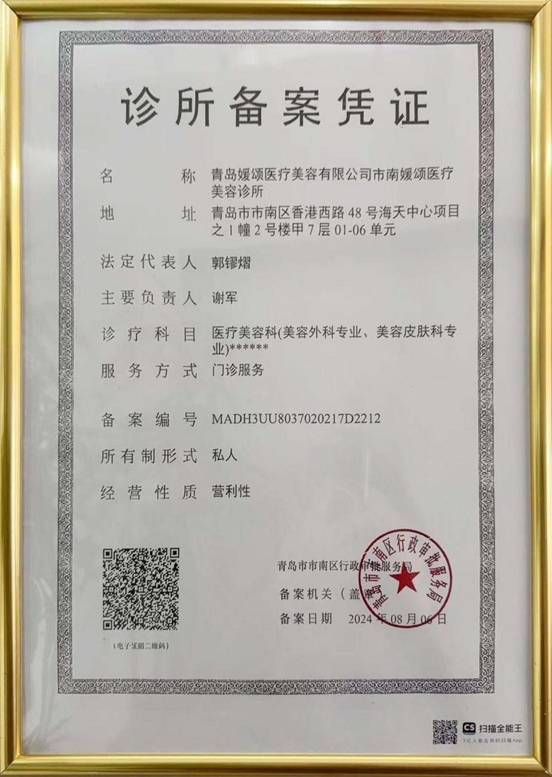青岛诊所备案凭证